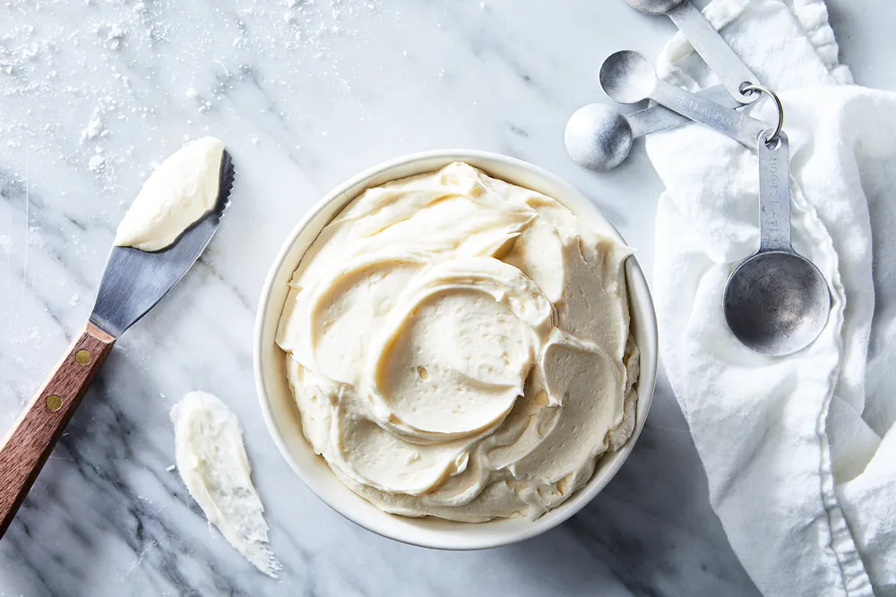 When making frosting of any kind, it’s important that all your dairy products (or whatever ingredients you’re using) are the same temperature. If the butter is softened to room temp but the heavy cream or cream cheese is colder, you’ll end up with a curdled-looking mess that you won’t want to use—or eat. But don’t worry—if this happens, pop the frosting in the microwave in 10 to 20-second increments and mix until all the butter curdles are melted. Once the frosting is smooth without any visible split clumps (it’ll be pretty liquidy at this point, but don’t worry), cover it and transfer it to the fridge until firm, 20 to 30 minutes. Then, remove and whip it back up into a light and fluffy frosting.