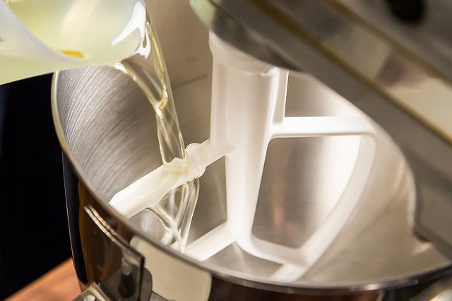 I made this a few days ago using a hand mixer. Someone should have warned that I need to do lots of arm strengthening beforehand or pop some steroids or something, as mixing the batter took every ounce of my strength! Still, it was delish.